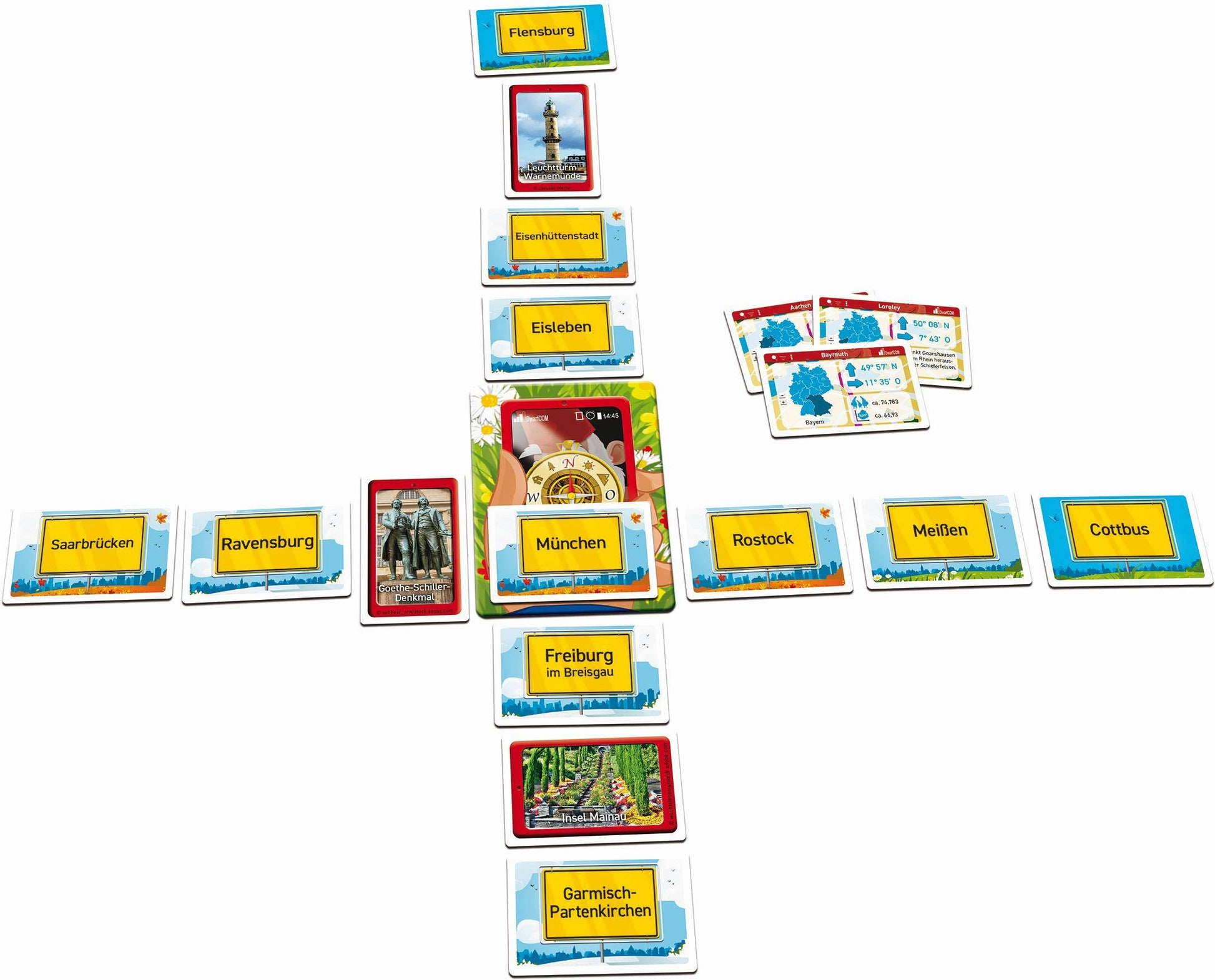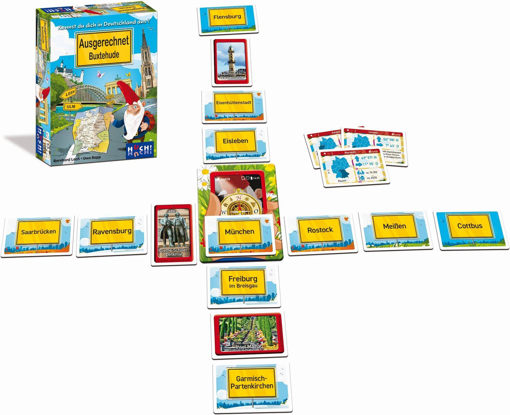 Das beliebte Spiel in neuem Gewand! Ein Geographiespiel mit Bluff für die ganze Familie, das spielerisch Wissen vermittelt. Liegt Buxtehude westlich oder östlich von Hamburg? Und wo liegt Kassel? Eher im Norden, oder doch im Süden? Wer sich ein bisschen in Deutschland auskennt, wird kein Problem damit haben, die Ortskarten an die richtige Stelle zu legen. Und wer sich nicht auskennt, wird bei "Ausgerechnet Buxtehude" sicher das ein oder andere dazulernen. Denn eigentich geht es gar nicht so sehr darum, die Karten an die richtige Stelle zu legen. Hauptsache, die anderen Spieler glauben, dass sie richtig liegen. Gut geblufft ist hier halb gewonnen! Wird eine falsche Karte aber angezweifelt, hat das Folgen ... In der neu designten Auflage kommen noch weitere Karten hinzu.