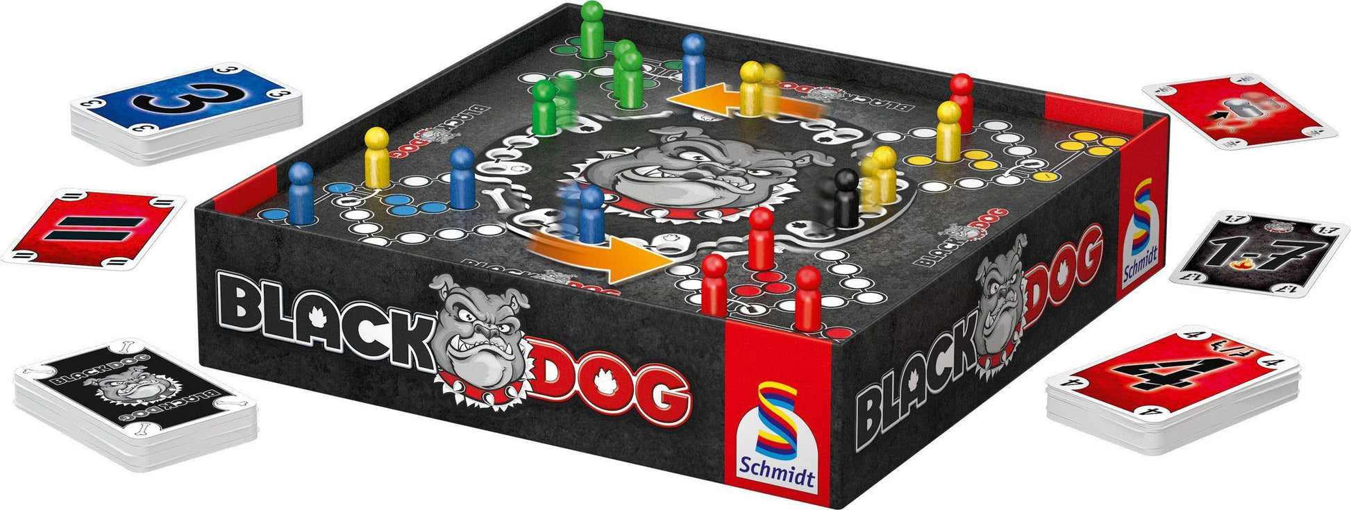 "Hier dreht sich alles um den Black DOG! Denn der verbrennt alle Figuren, über die er drüber läuft. Da kann es hilfreich sein, das Drehrad in der Spielplanmitte zu drehen und sich so vor dem Hund in Sicherheit zu bringen und evtl. auch gleich noch einen Gegner vor dem Ziel wegzudrehen… Das neue, ungewöhnliche Drehrad bringt neuen Schwung in den modernen Klassiker DOG!"