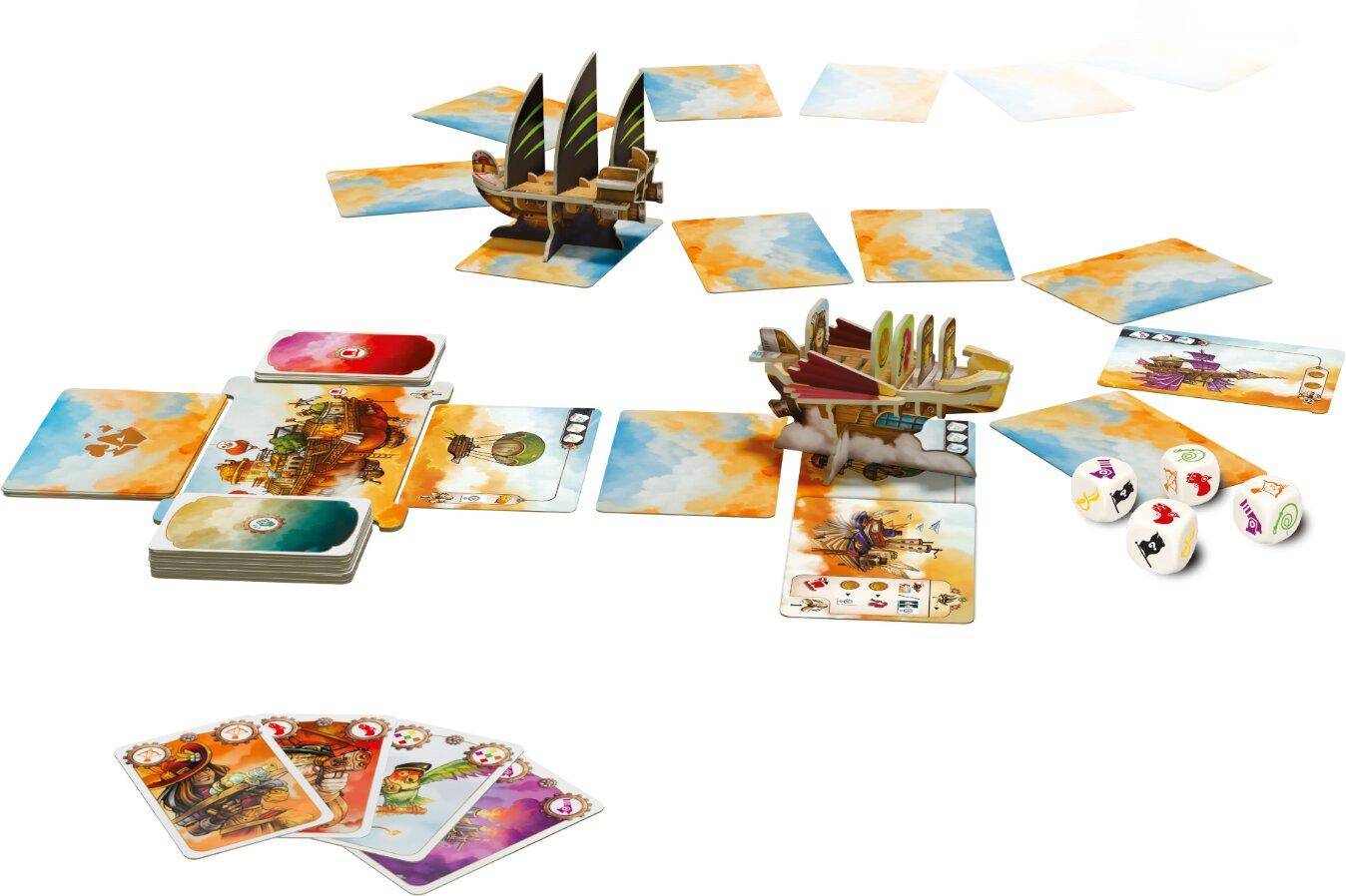 Celestia Duo ist ein kooperatives Spiel für zwei Personen mit eingeschränkter Kommunikation. Ziel ist es, gemeinsam ein Piratenschiff einzuholen und zu besiegen. Die Spieler steuern ihr Luftschiff durch eine Kette von Hinterhaltkarten und müssen dabei Würfel-Symbole mit passenden Karten abwehren. Strategische Entscheidungen über Zwischenstopps zum Kauf von Ausrüstung, die Nutzung von Rauchgranaten und Mannschaftsfähigkeiten sowie begrenztes Ressourcenmanagement sorgen für taktische Tiefe. Das Spiel bietet drei Schwierigkeitsstufen und im Expertenmodus einen finalen Kampf gegen den Piraten.
