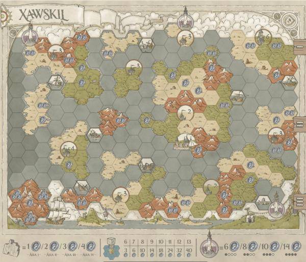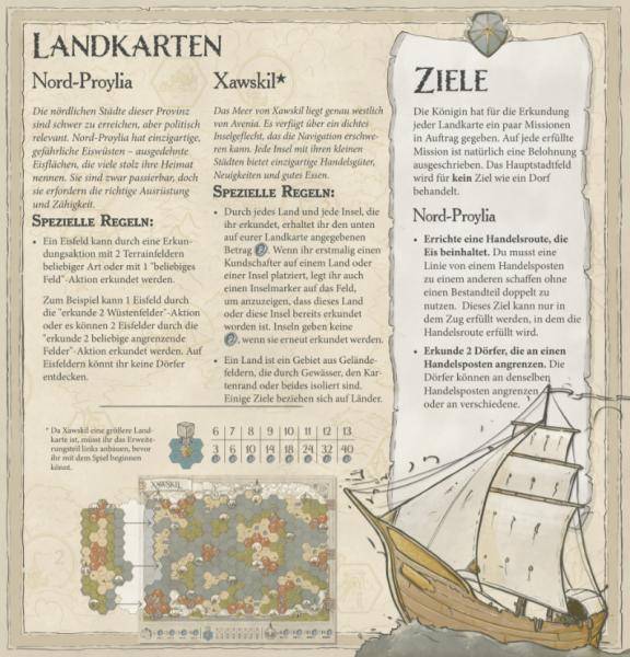 - 4 doppelseitige Landkarten (4 Nord-Proylia/Xawskil)