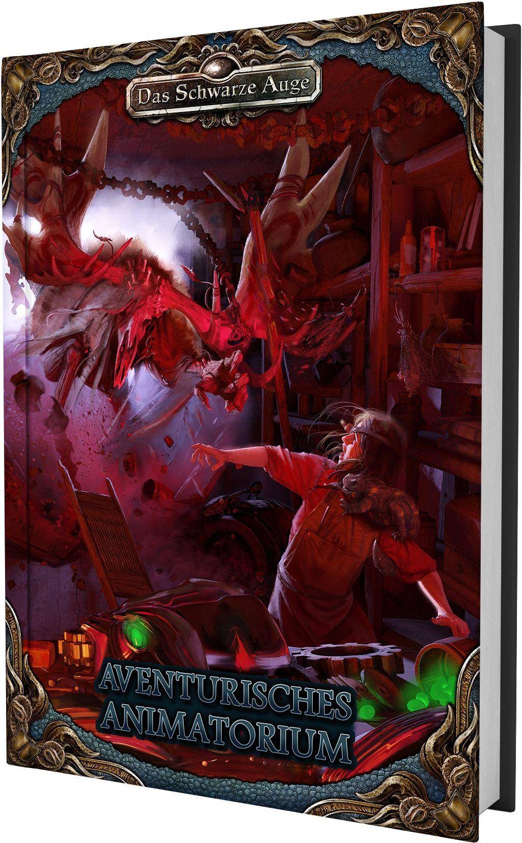 Unsterbliche, animierte Konstrukte entspringen den Animatorien Aventuriens, um ihren Konstrukteuren als Wächter, Kampfmaschinen, stumme Diener oder Forschungspartner zu dienen. Die magischen Werkstätten und ihre Schöpfer prägten Zeitalter und Regionen, ihre genialen Erfindungen werden verehrt und gefürchtet. Das Aventurische Animatorium ist die ultimative Spielhilfe zur Erschaffung, Kontrolle und Pflege von konstruierten Wesen. Sie stellt zahlreiche Werkstoffe vor, aus denen Golems, Automaten und Homunculi erschaffen werden können. Die Eigenheiten und Fähigkeiten von Golems aus allen erdenklichen Materialien werden ausführlich vorgestellt und mit spielfertigen Werten versehen, die nach eigenen Bedürfnissen mit mächtigen Veredelungen wie Astralspeicher-Kristallen, Sternenmetallen und vielem mehr personalisiert werden können. Zur Inspiration bietet das Aventurische Animatorium die gesamte Geschichte der Golemantie und stellt Koryphäen der Golembaukunst vor. Doch auch profane Mechaniker und Begeisterte der Arcanomechanik kommen nicht zu kurz: Rund 25 Automatenmodelle in profaner und magischer Ausführung werden vorgestellt, darunter Alltagshelfer, Fallen, Kampf- und Lastenautomaten für jede Gelegenheit. Abgerundet wird dies durch die Vorstellung namhafter Automatentüftler und die Geschichte der Automatenentwicklung. Zwischen blubbernden Kolben, in moosigen Einsiedlerhütten und im Schein akademischen Schaffenswahns erheben sich außerdem 5 Homunculusarten aus dem Animatorium, um mit Genie und Wahnsinn an der Seite ihrer Schöpfer ihrem Handwerk nachzugehen. Auch ihre Geschichte und Experten werden vorgestellt und Unterschiede zwischen Golems, Automaten und Homunculi herausgearbeitet. Abschließend enthält diese Spielhilfe die Abenteuerskizze Der Lebende Palast: Jahrhundertelang überdauerte dieser mechanische Organismus im Wüstensand und ruft nun, durch den Sternenfall freigelegt, nach legendären Helden, die es wagen mögen, sich von ihm verschlucken zu lassen, um an die Schätze in seinem Bauch zu gelangen.