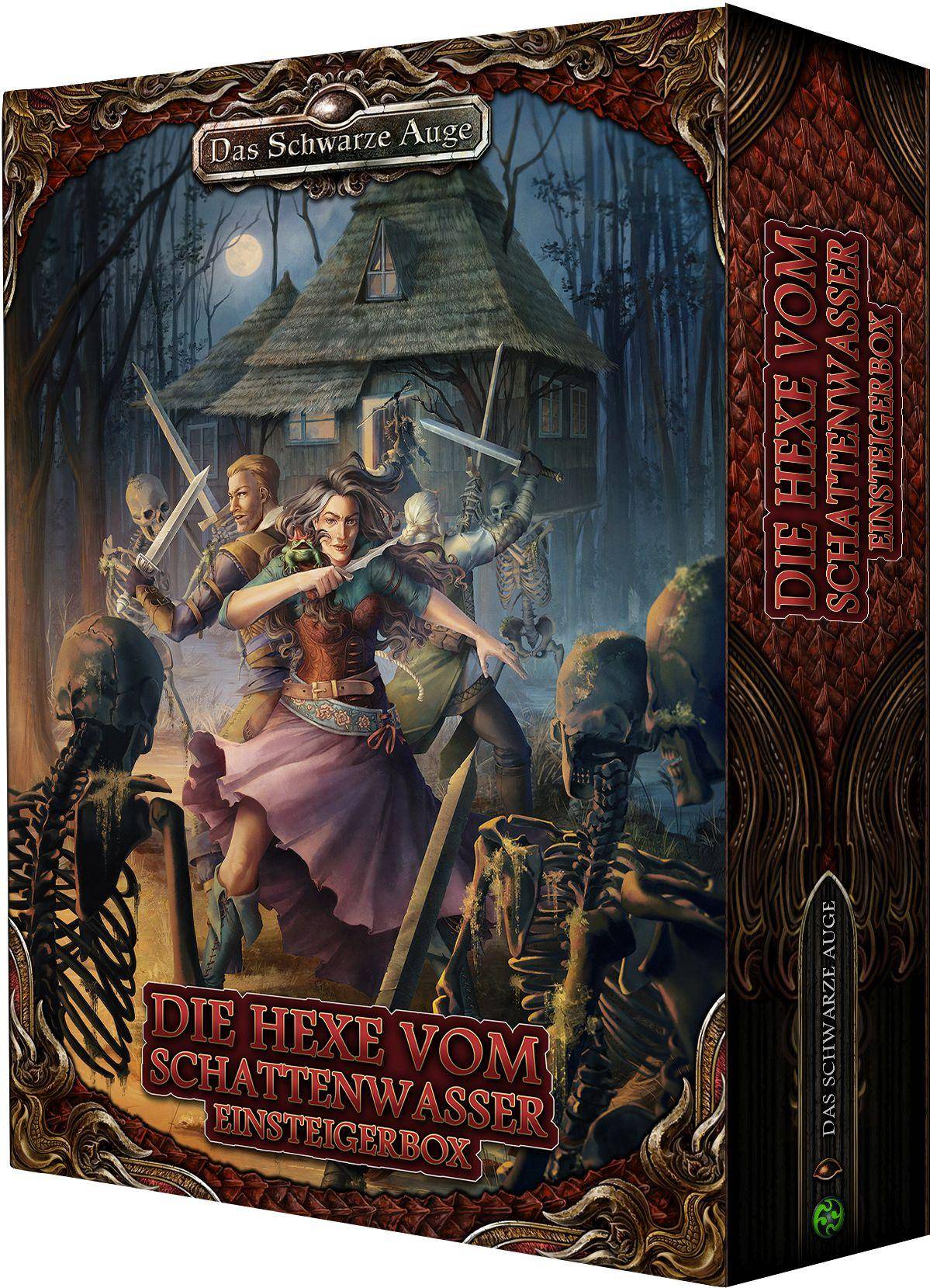 Das Erweiterungsset Die Hexe vom Schattenwasser ist eine Ergänzung zur Einsteigerbox Das Geheimnis des Drachenritters. Mit diesem Set kannst du auf zwei neue Helden, eine Hexe und einen Streuner, sowie auf eine Reihe neuer Szenarien und ein Abenteuer zurückgreifen. Zudem enthält das Set neue Regelergänzungen und eine Beschreibung von Reichsend, der Hauptstadt der Grafschaft Heldentrutz.