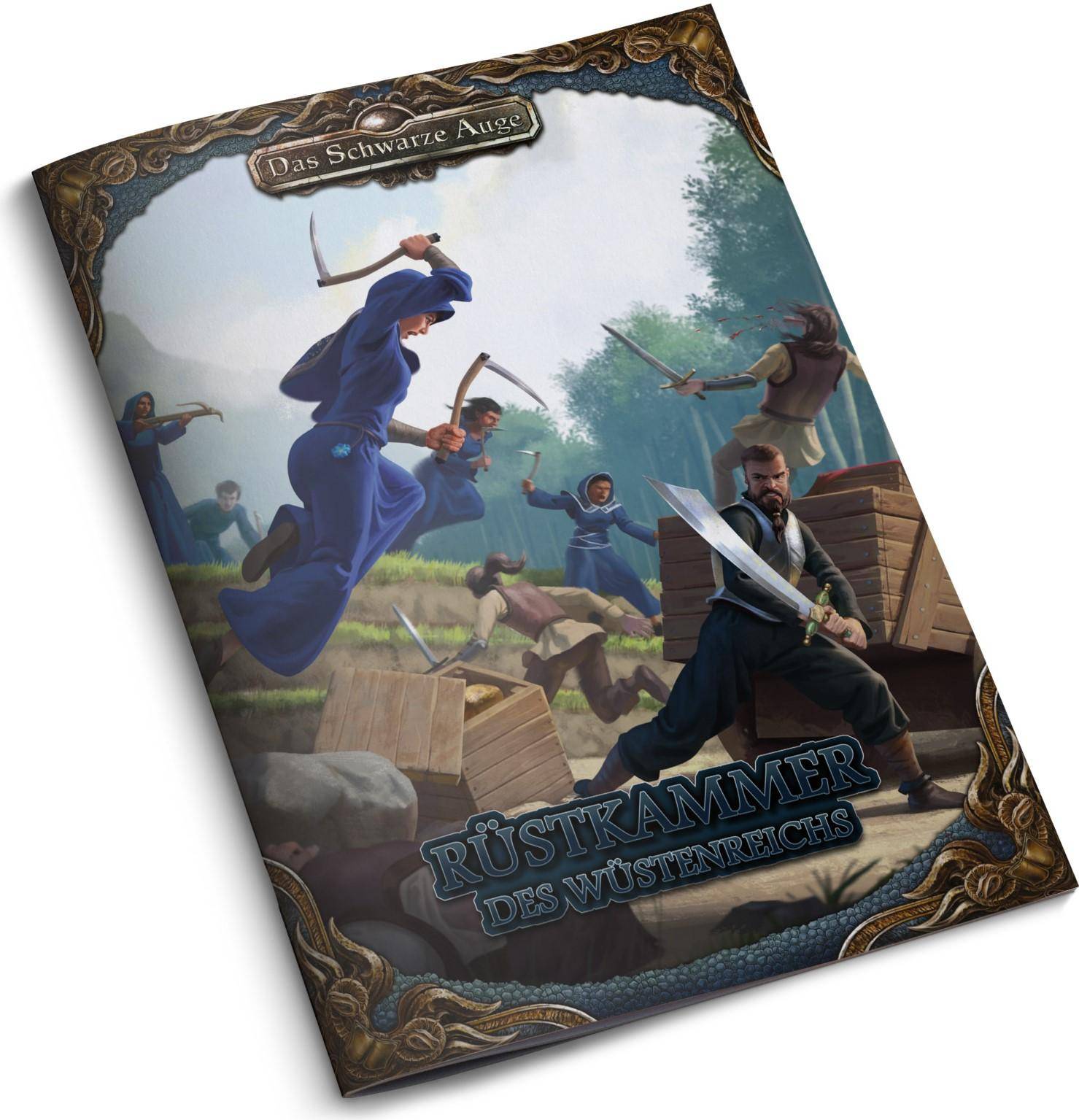Die Rüstkammer des Wüstenreichs stellt Waffen, Rüstungen und weitere Ausrüstungsgegenstände vor, die für das novadische Kalifat, Thalusien und die Ferkinas typisch sind. Neben überlebenswichtigen Hilfsmitteln wie dem Sonnenschutzschleier enthält sie magische Artefakte wie das Sternenschwert Esravun des Mautaban und den Tausendjährigen Zweihänder sowie heilige Talismane wie Raschas Blutkelch und den Schleier des Nebels. Ein Mysterien-Feature über Waffen im anbrechenden Zeitalter der Rache sowie ausführliche Hintergründe zu Karawanen und zugehörige Abenteuerideen runden den Band ab.