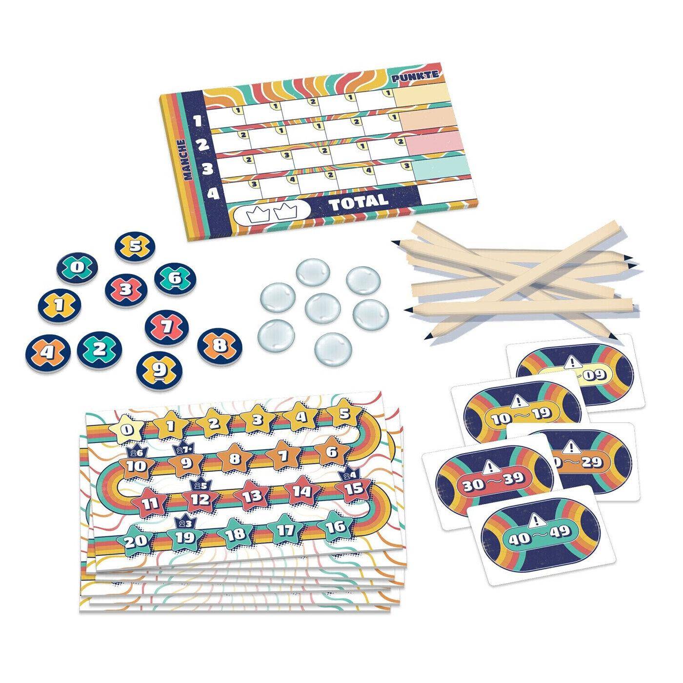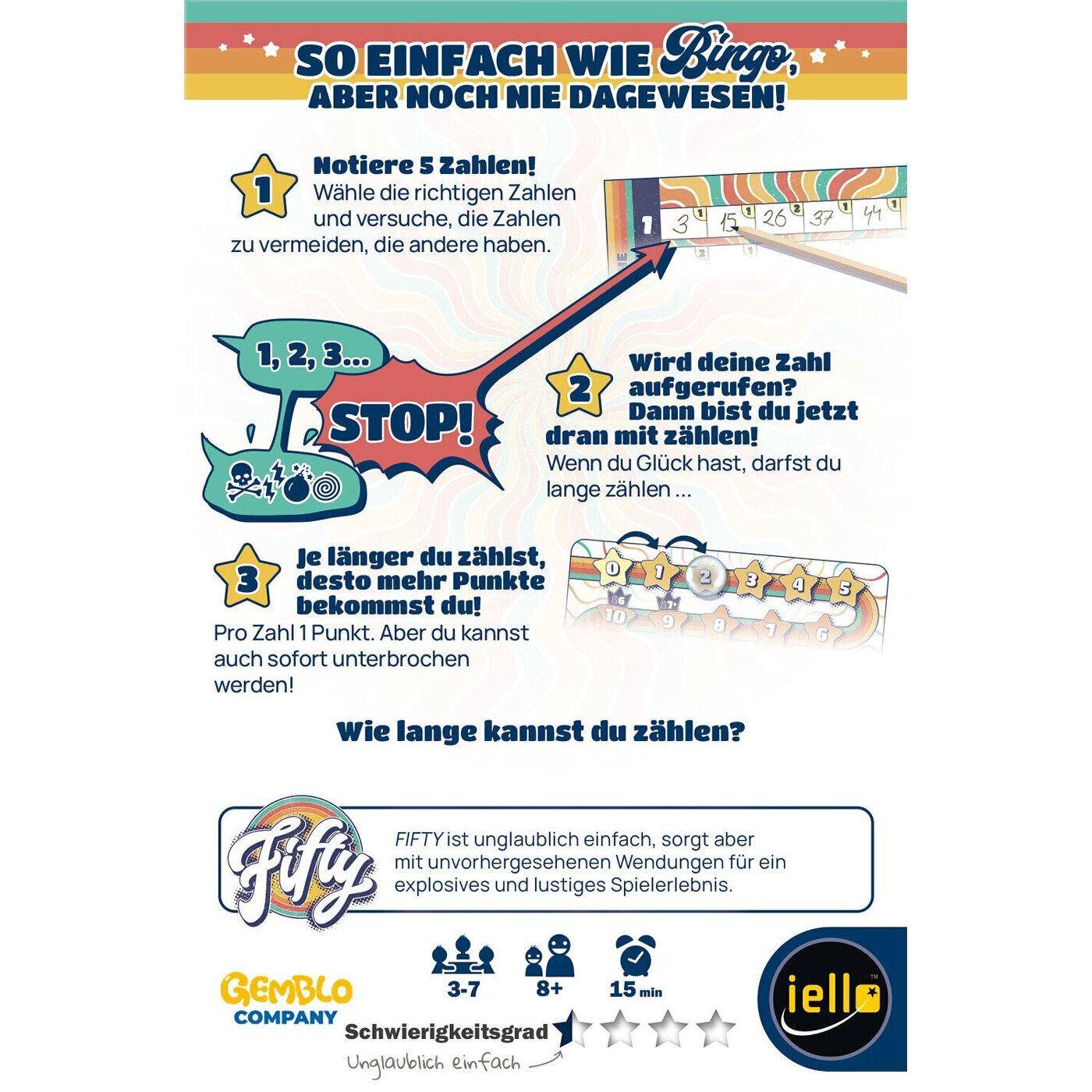 Bei Fifty suchst du dir deine Zahlen zwischen 1 und 50 aus und schreibst sie auf deinen Zettel. Versuch am besten, nicht die gleichen Zahlen zu nehmen wie die anderen. Und dann geht's auch schon los: 1, 2, 3... Wird eine deiner Zahlen aufgerufen? Dann bist du dran! Je länger du zählen kannst, desto mehr Punkte kassierst du. Aber aufgepasst: Wenn du eine Zahl sagst, die auch jemand anderes gewählt hat, schnappt der dir das Zählen weg! Na, wie lange hältst du durch?Angaben zum HerstellerEAN: 4260071884879