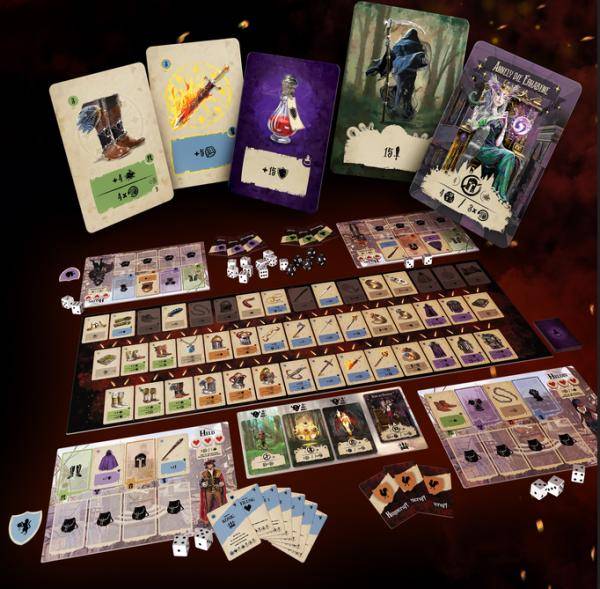 Im Laufe des Spieles stellt ihr euch mit euren Würfeln und eurer Ausrüstung gegen böse Kreaturen. Findet neue Ausrüstung, Waffen, Tränke und Artefakte und wertet diese in der Schmiede zu noch mächtigeren Ausrüstungskarten auf.