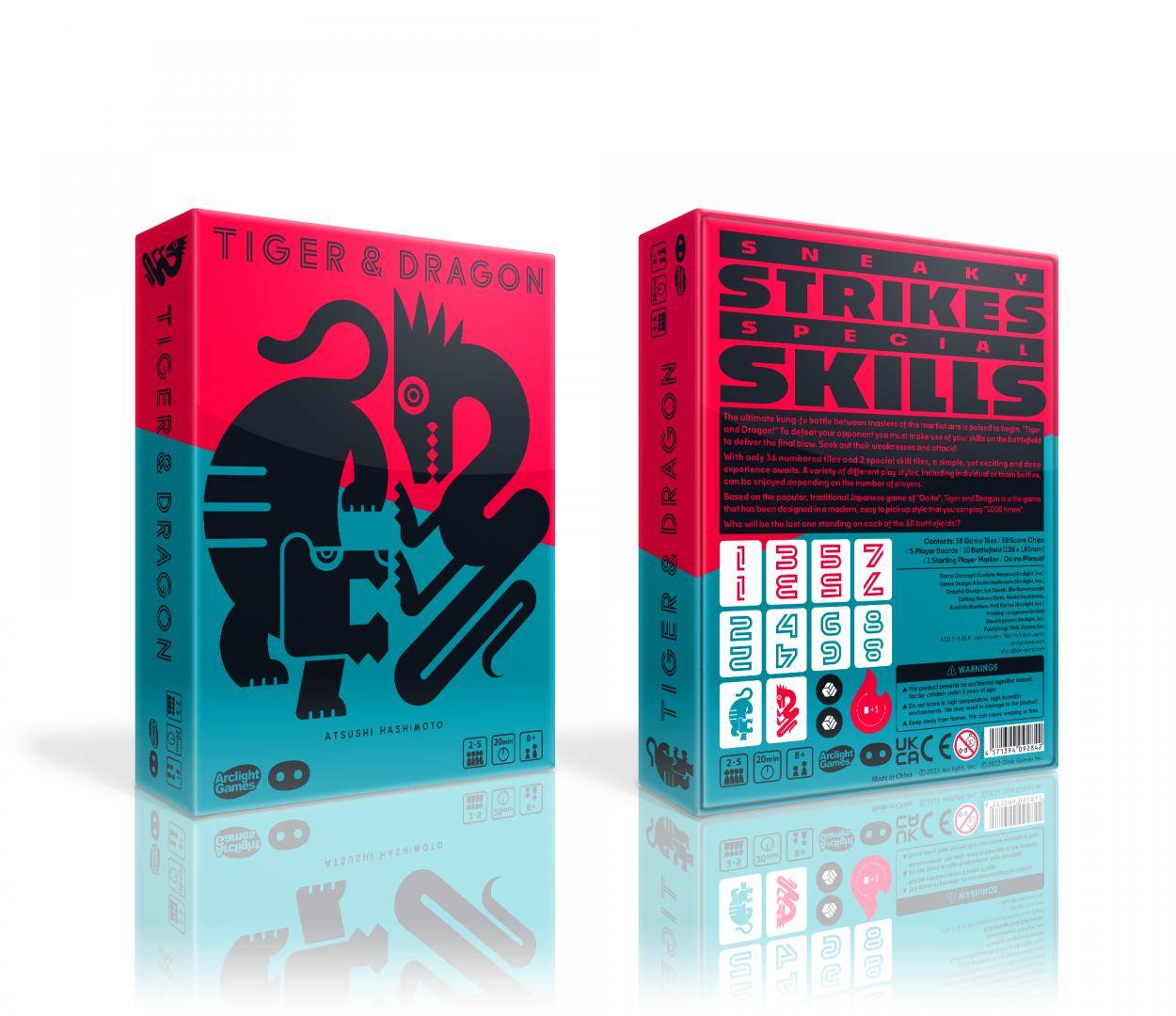 (Dies ist die englische Version des Spiels "Tiger & Dragon": das Spielmaterial ist überwiegend sprachneutral bis auf 10 Kampfplatzkarten, welche englischen, deutschen, spanischen und französischen Text beinhalten; die Beschreibung der Verpackung ist auf Englisch.)Entfessle eine Angriffswelle! Schlag hart zu!Der ultimative Kungfu-Showdown zwischen Kampfkunstmeistern steht bevor. Dies ist "Tiger & Dragon".Um eure Gegner zu bezwingen, müsst ihr entscheiden, welche Fertigkeiten ihr im Kampf und welche ihr zum Abschluss einsetzen werdet.Ergründet die Geheimnisse eurer Gegner, nutzt ihre Schwachstellen und schlagt erneut zu!36 nummerierte Spielsteine und zwei Arten von "Geheimkunst"-Spielsteinen - das reicht bereits, um dieses simple, aber zugleich tiefgehende Spiel voller Aufregung zu genießen.Je nach Spieleranzahl und je nachdem, ob ihr einzeln oder als Team spielt, könnt ihr zusätzlich frischen Wind ins Spiel bringen.Das Spiel basiert zwar auf dem populären, japanischen traditionellen Spiel "Goita", aber unter einem neuen, modernen Gewand ist es nun einsteigerfreundlich und kann von jedem gespielt werden.Wer wird auf den zehn Kampfplätzen in diesem Spiel, was "1.000-mal gespielt werden kann", überleben?