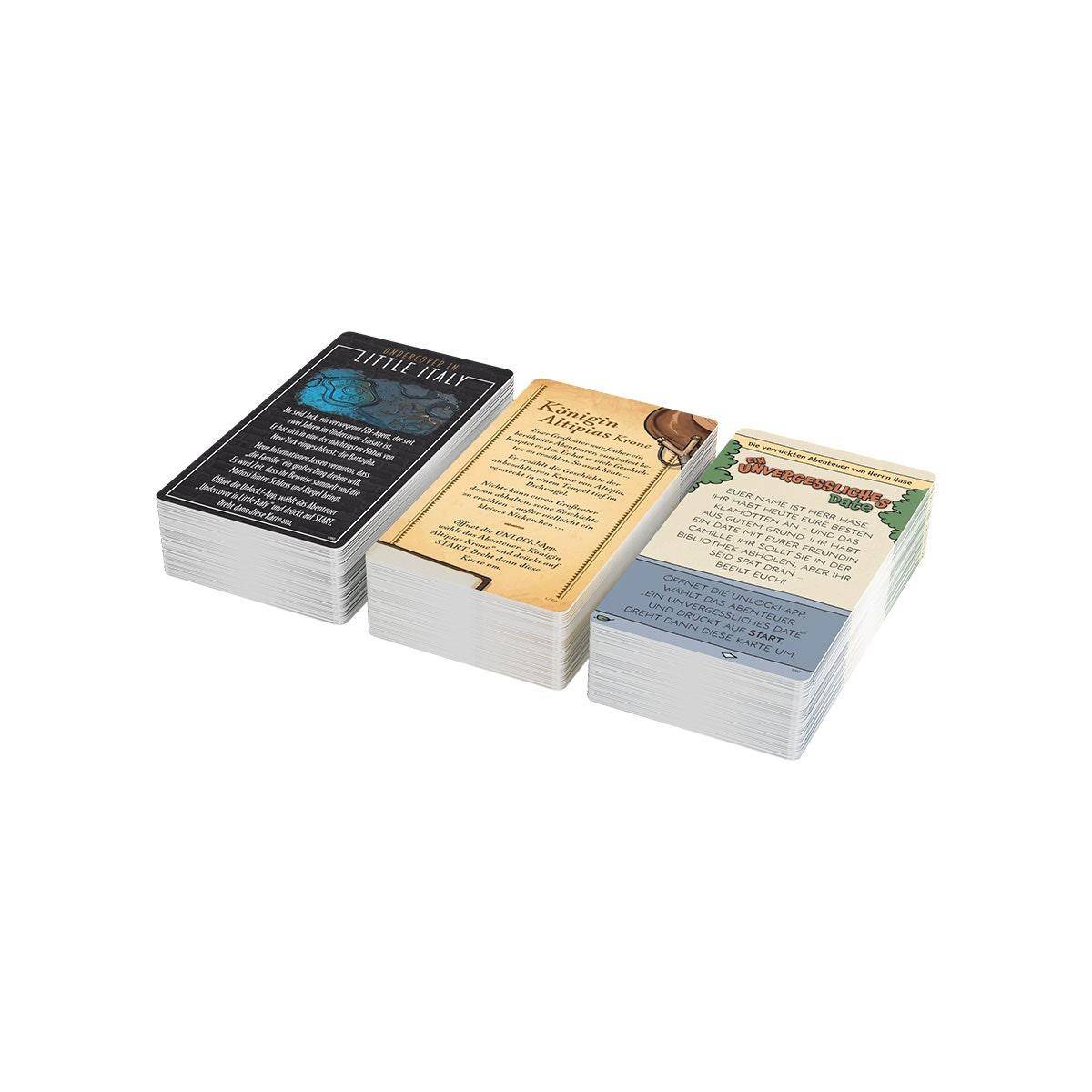 Unlock! Risky Adventures bringt drei neue, riskante Abenteuer in der beliebten Escape-Reihe Unlock!. Im ersten Fall lauscht ihr den spannenden Erzählungen eures Opas und begebt euch mit ihm auf die abenteuerliche Suche nach Königin Altipias Krone. Ihr spielt als Herr Hase, dem kultigen Helden aus den Comics von Lewis Trondheim. Ihr habt ein unvergessliches Date mit eurer Freundin, doch nichts läuft wie geplant! In Undercover in Little Italy plant eine der mächtigsten Mafias von New York einen großen Coup. In Live-Escape-Rooms werden die Teilnehmer eingeschlossen und müssen es innerhalb von 60 Minuten schaffen, den Raum zu verlassen. Die Spiele der Unlock!-Reihe lassen euch dieses kooperative Erlebnis, unterstützt durch eine App, am heimischen Spieltisch erleben.