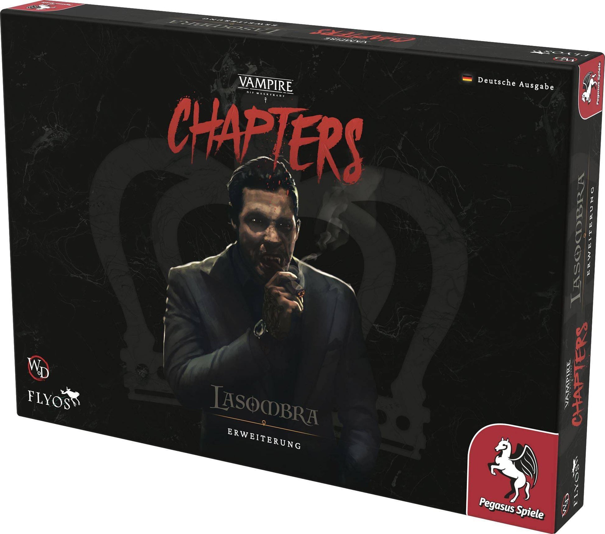 Der Lasombra-Clan ist düster und geheimnisvoll, aber auch stilvoll und vornehm. Mit der Vampire: Die Maskerade – CHAPTERS: Lasombra Erweiterung kommt Edward Harvey als neuer Charakter ins Spiel. In den dazugehörigen zwei neuen Kapiteln für das Vampire: Die Maskerade – CHAPTERS Grundspiel erkunden die Spielenden die Geschichte der Lasombra, müssen sich neuen NSC und neuen Herausforderungen stellen.