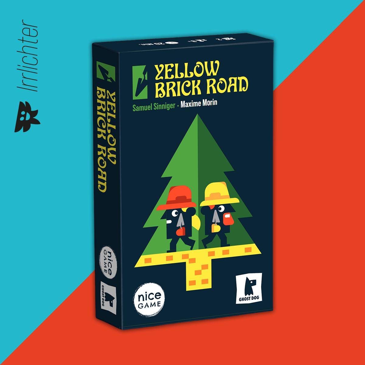 Irrlichter ist eine verspielte Mikrospiel-Sammlung, die auf einfache Regeln, unmittelbaren Spaß und einen farbenfrohen, minimalistischen Stil setzt und sich besonders gut für kurze Spielsessions eignet. Bei Yellow Brick Road spielst du einen Bauarbeiter, der gerade den gelben Ziegelsteinweg baut, welcher sich durch das Land Oz schlängelt. Es ist deine Aufgabe, den gelben Ziegelsteinweg zu erweitern! Auch wenn du dabei von den schelmischen geflügelten Affen gestört wirst, willst du den längsten Ziegelsteinweg ohne Sackgassen bauen! Während deines Zuges baust du mit deinen Karten ein 3x3 Raster, welches so viele miteinander verbundene Straßenkarten wie möglich enthält, um damit mehr Punkte als dein Mitspieler zu erzielen.