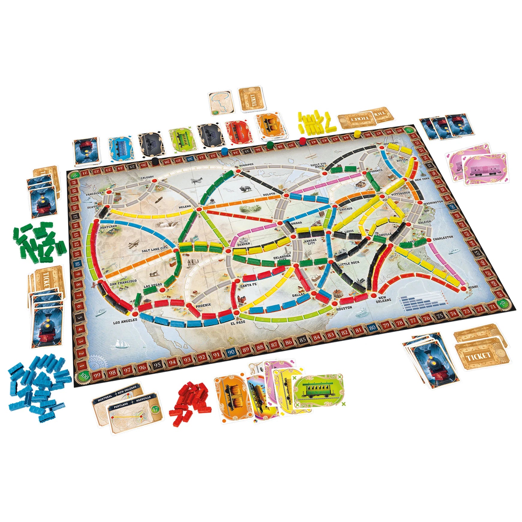 Zusätzliche Punkte können die Spieler bekommen, wenn sie die Anforderungen ihrer Zielkarten erfüllen und die darauf angegebenen Städte miteinander verbinden. Bonuspunkte gibt es außerdem für die längste durchgehende Eisenbahnstrecke.